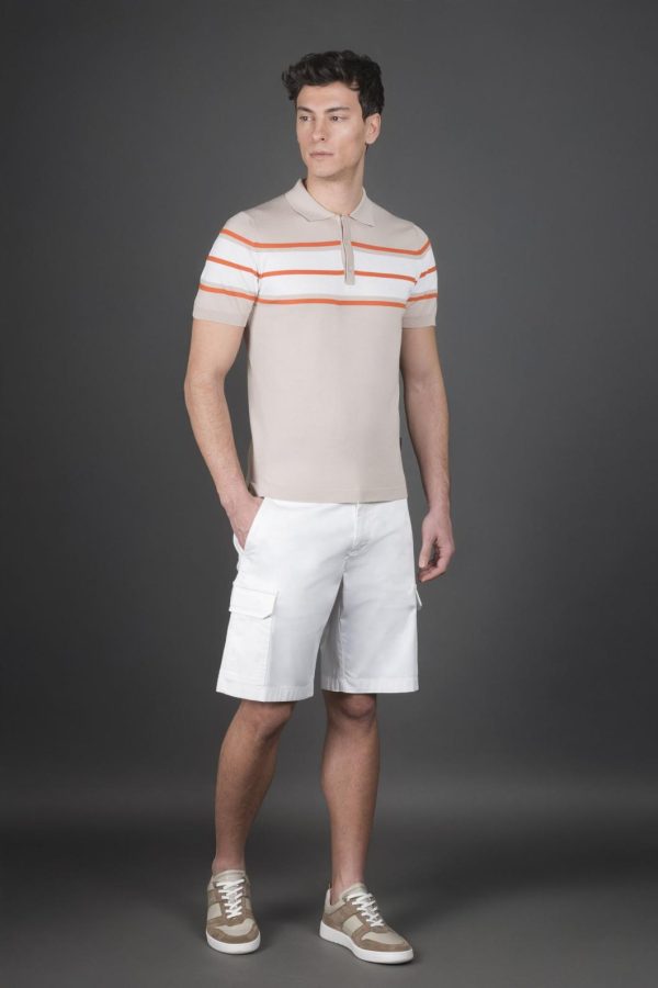 Horizontal stripe pattern in the three colors of the MooRER Golf Collection