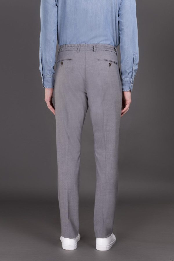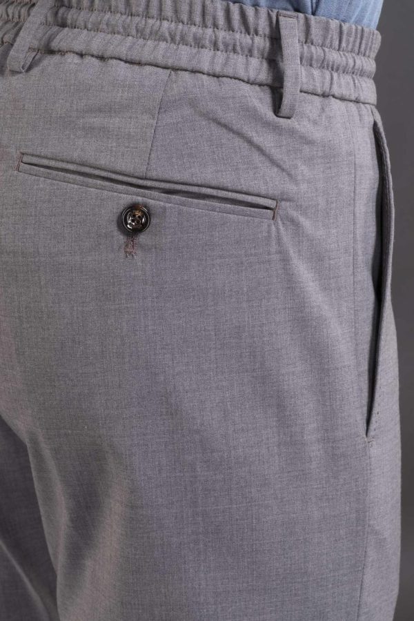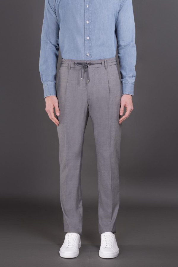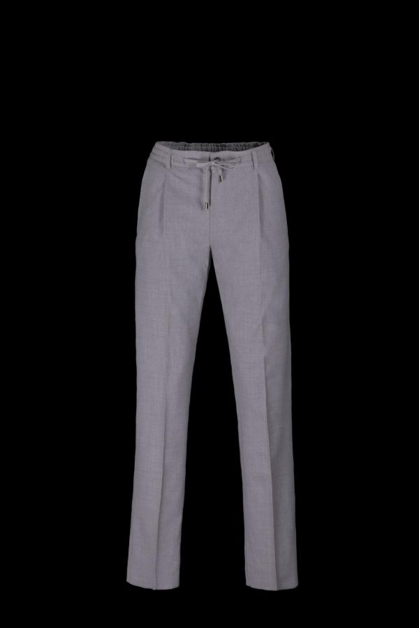 Pants made from a soft, lightweight, enveloping, and elastic fabric composed of a thread of very fine Australian wool.