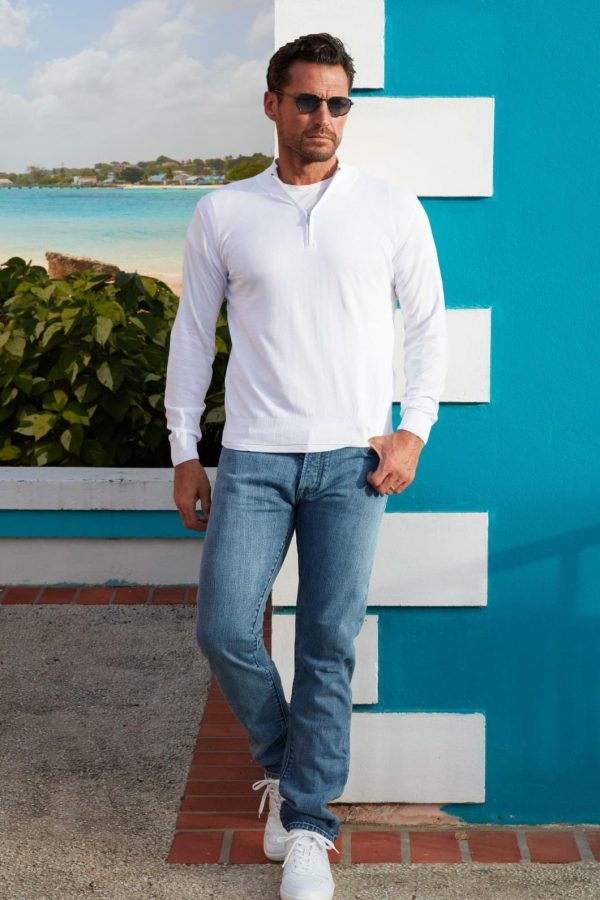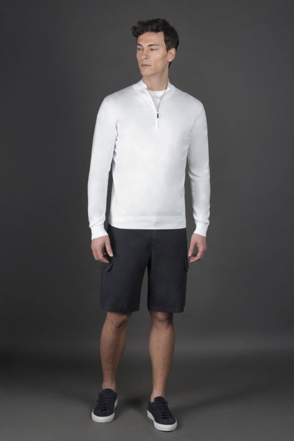 Half-zip sweater made from an Excellence fabric: Sea Island cotton, the most precious cotton in the world. A yarn with exceptional characteristics, as fine and durable as no other cotton variety, perfectly balanced, light, and fresh.