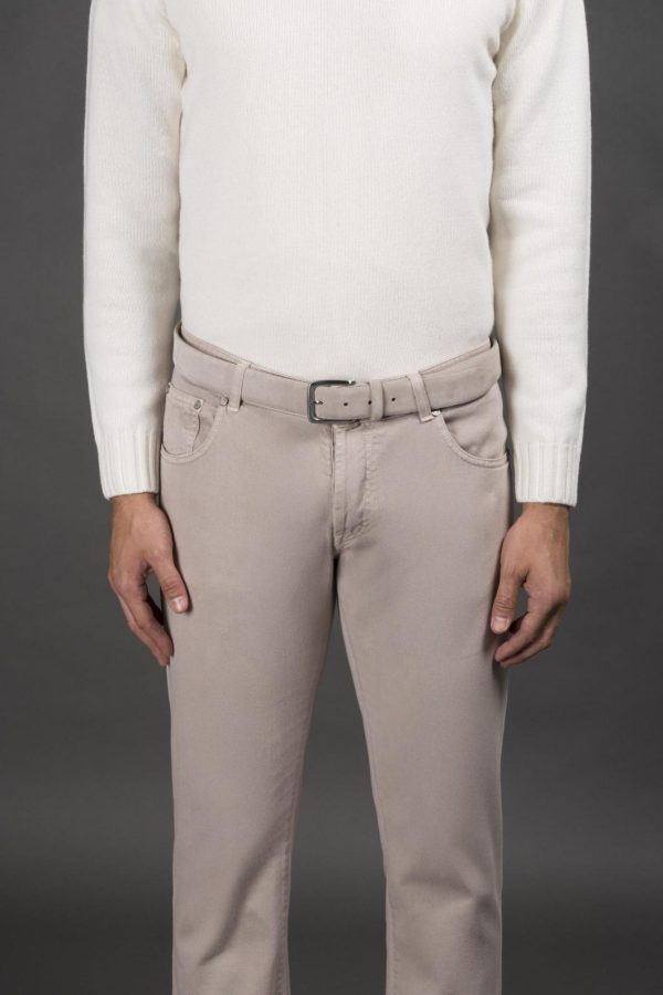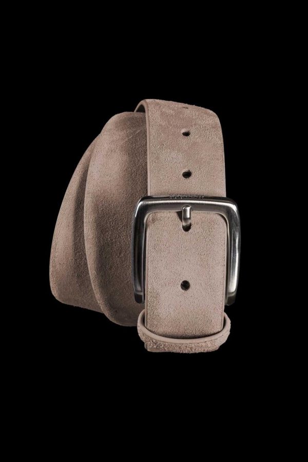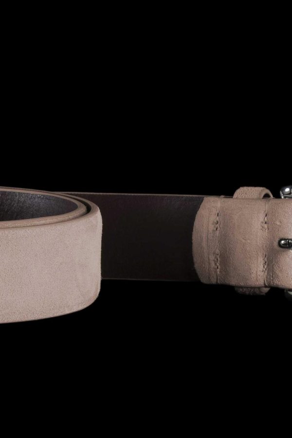 High-quality suede calfskin belt, barrel-dyed with aniline. The velvety surface has a unique brightness and an extraordinarily soft touch due to the writing effect.
