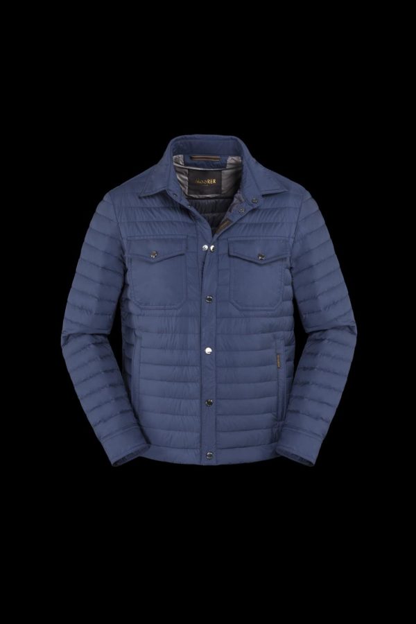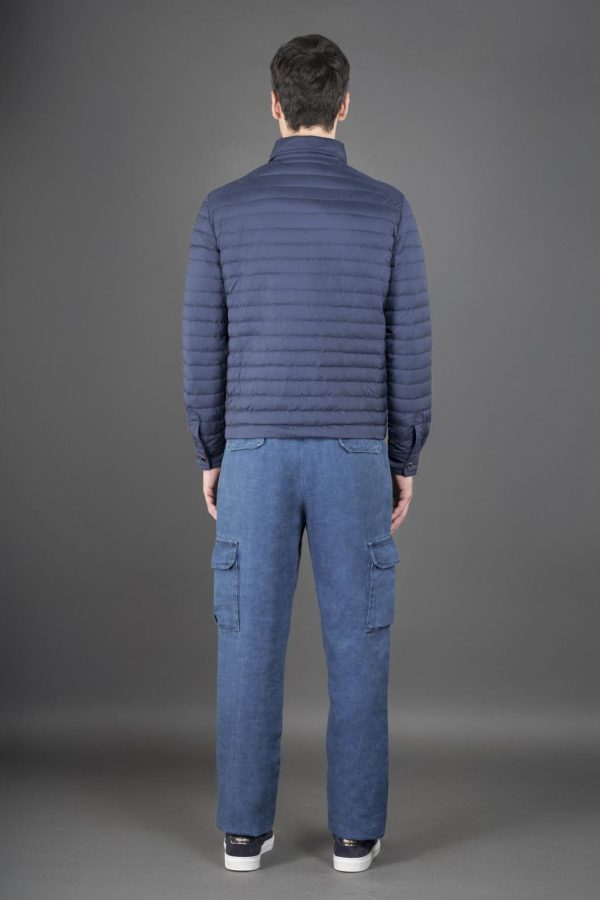 Overshirt from the Aqua Line (1 umbrella). Made of very light down-proof matte fabric, with a texture similar to silk fabrics, featuring subtle creases on the surface that give the garment its unique character.