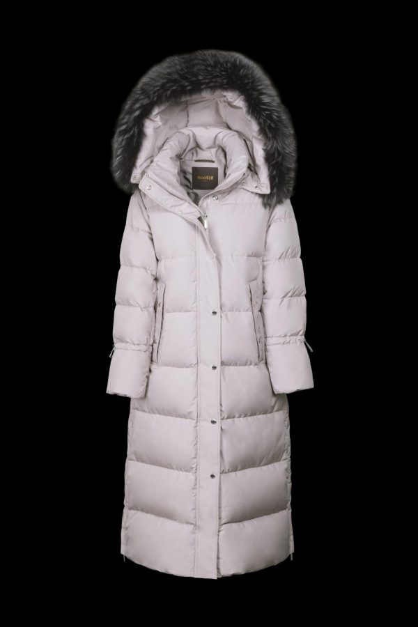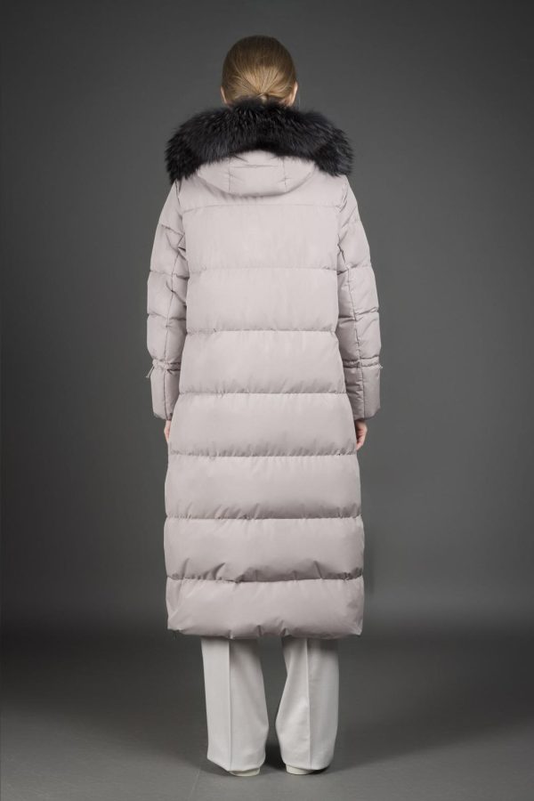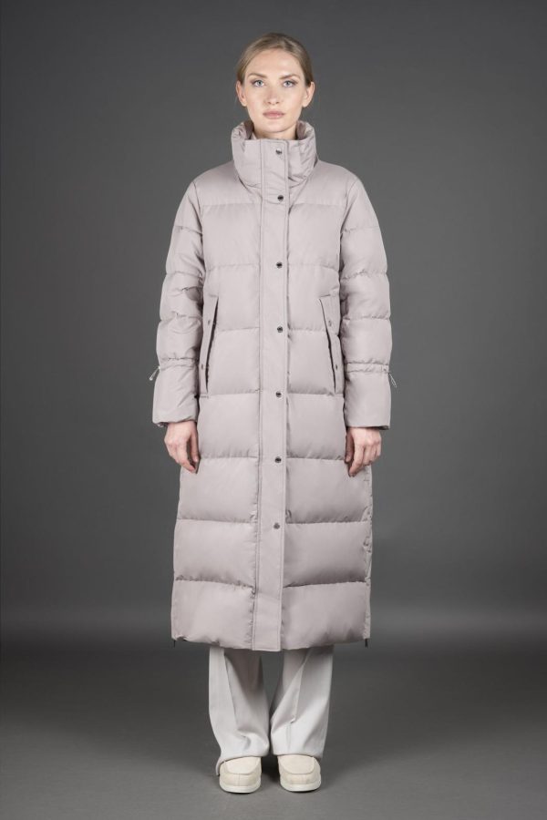 Long oversized down jacket belonging to the Acqua line (2 umbrellas). Padded with very fine goose down quilted in large boudin, it is made of lightweight technical fabric with a waterproof membrane.