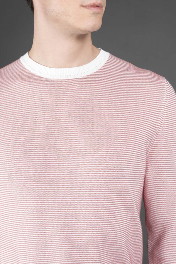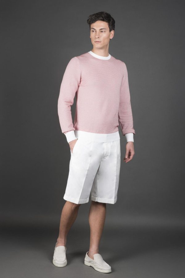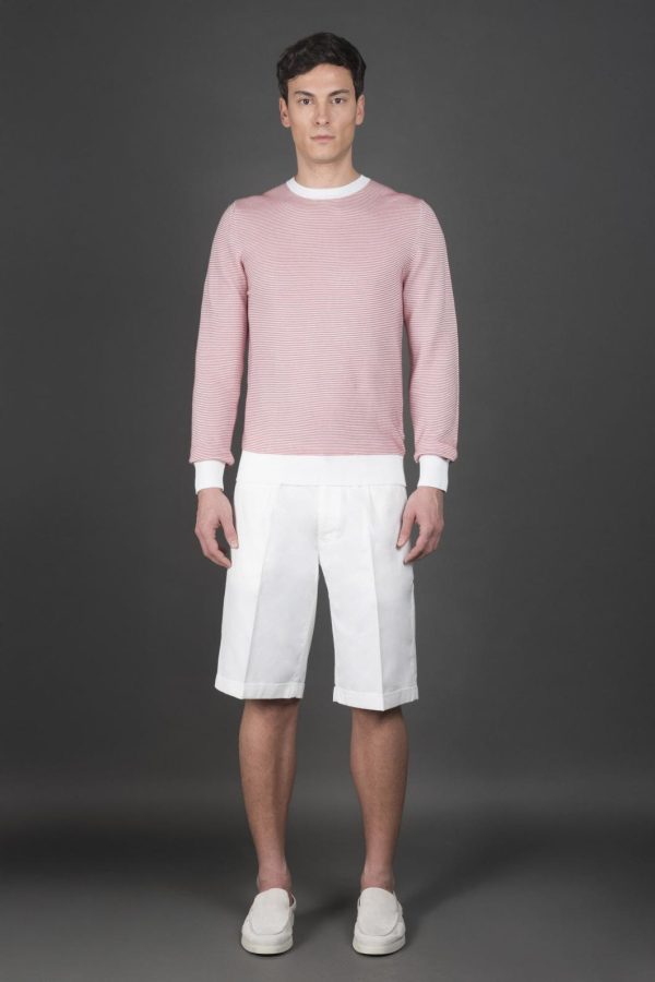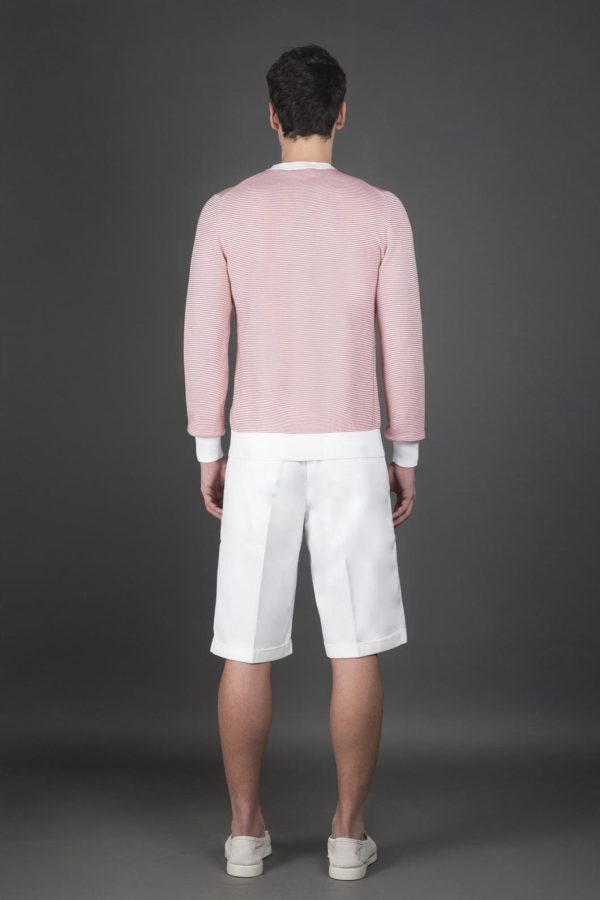 The exotic look of linen and the comfort of cotton give shape to a succession of subtle stripes of different textures in a “ton sur ton” color range that gives the garment a refined, sporty design.