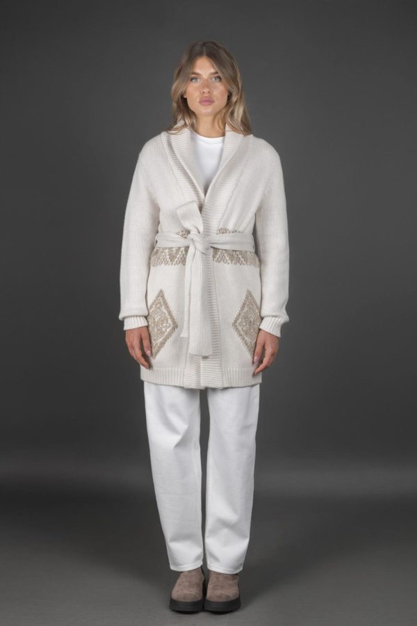Cardigan jacket with jacquard patterns in wool and cashmere.