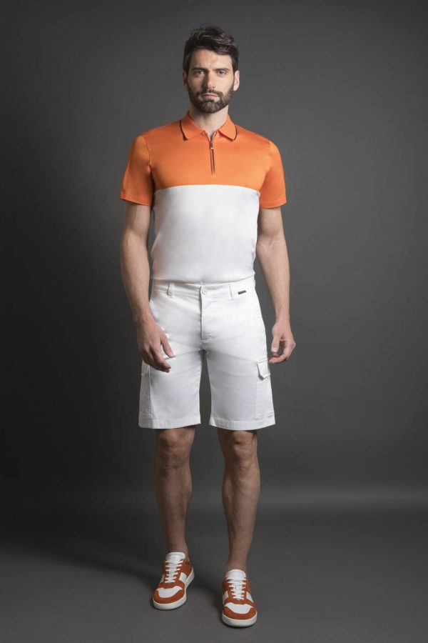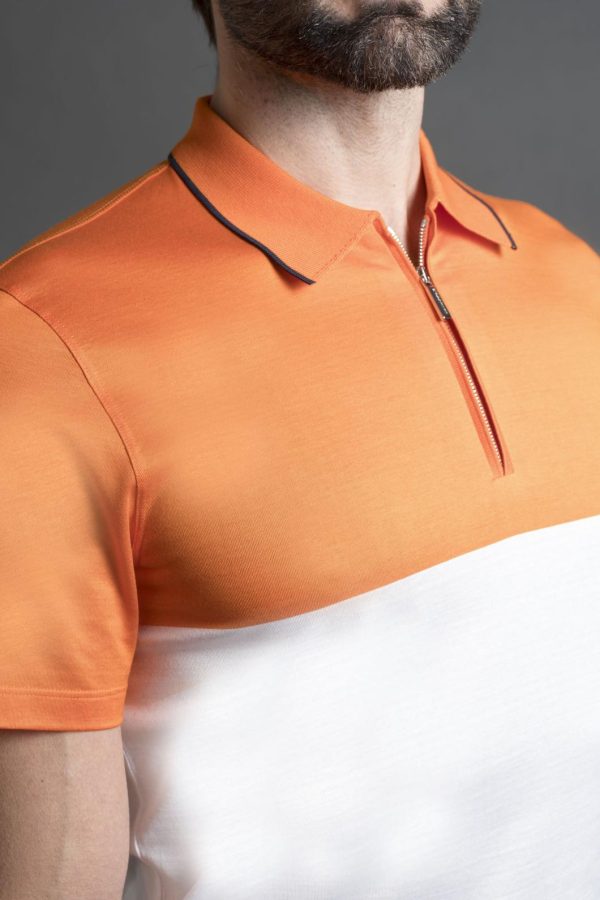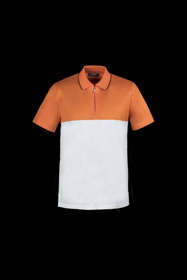 Polo shirt featuring a “color-block” design, from the MooRER Golf Collection.