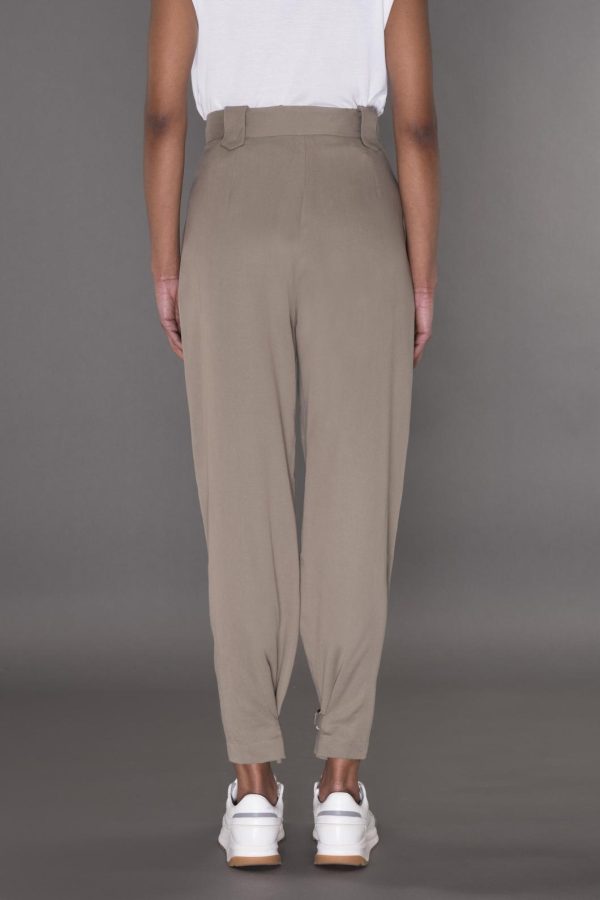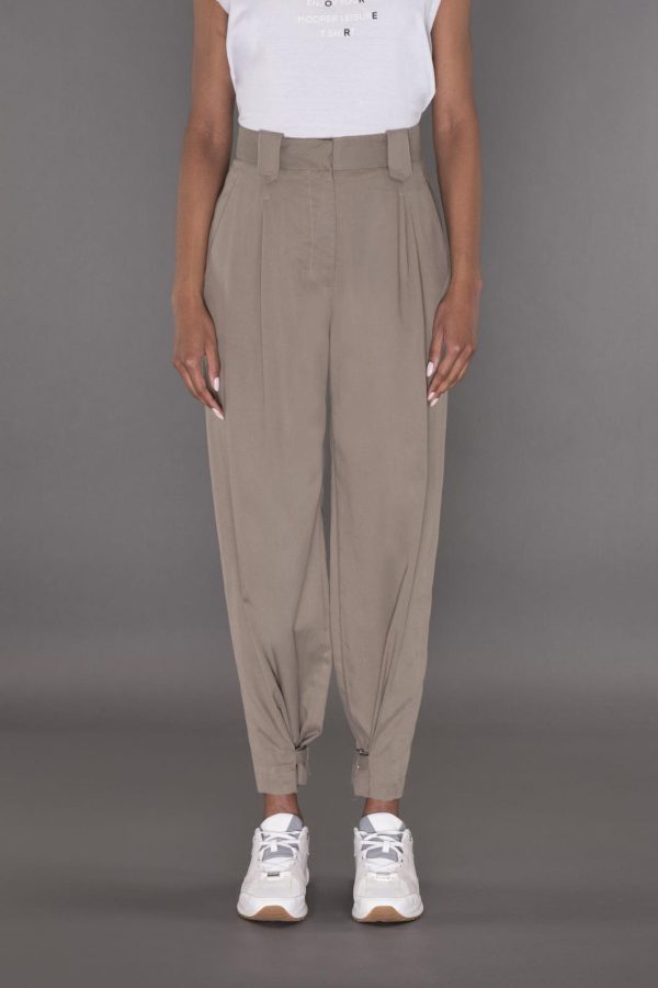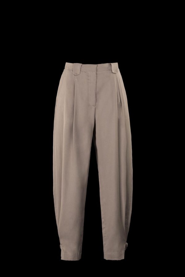 Modern-cut pants made from fluid gabardine made of Tencel and cotton, an eco-friendly fiber derived from eucalyptus. With vivid and intense colors, it is smooth, elastic, and breathable.