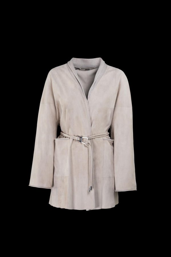 Unlined cardigan, made of lightweight sheep suede, soft to the touch. This material has a distinctive surface that is pleasant to touch, combined with a cashmere-silk blend knit that makes the garment more comfortable, elegant and sophisticated.