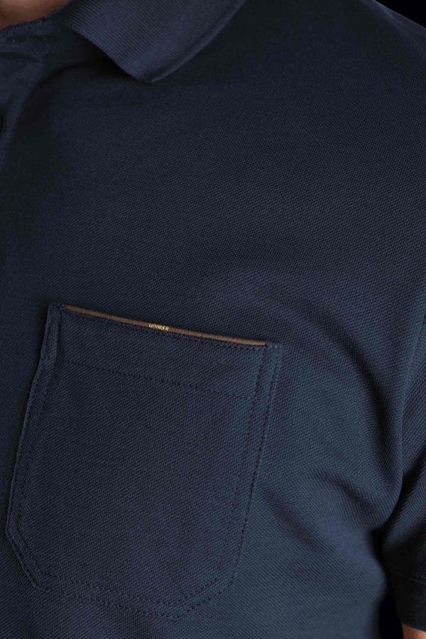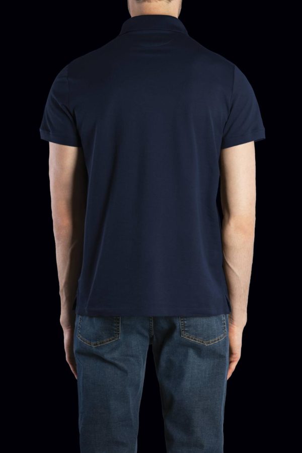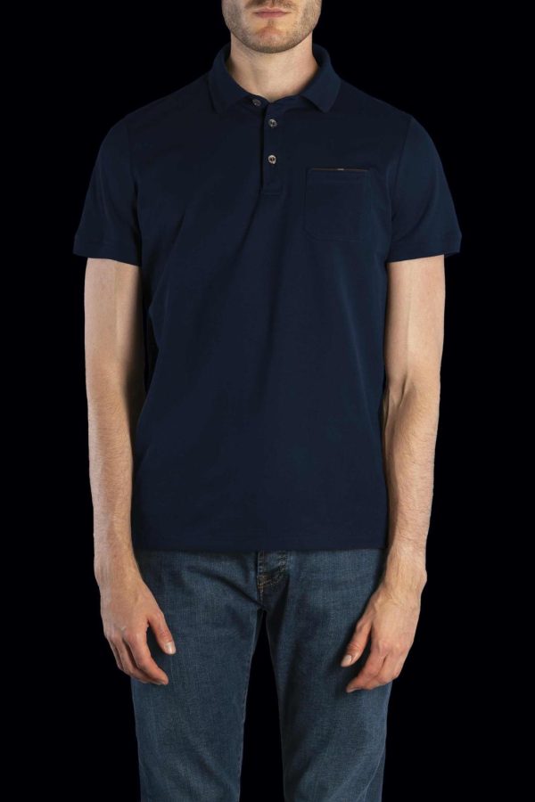 Cotton micropiqué polo, fresh and lightweight. The “honeycomb” texture of the fabric is emphasized by the ribbed cotton knit on the collar.