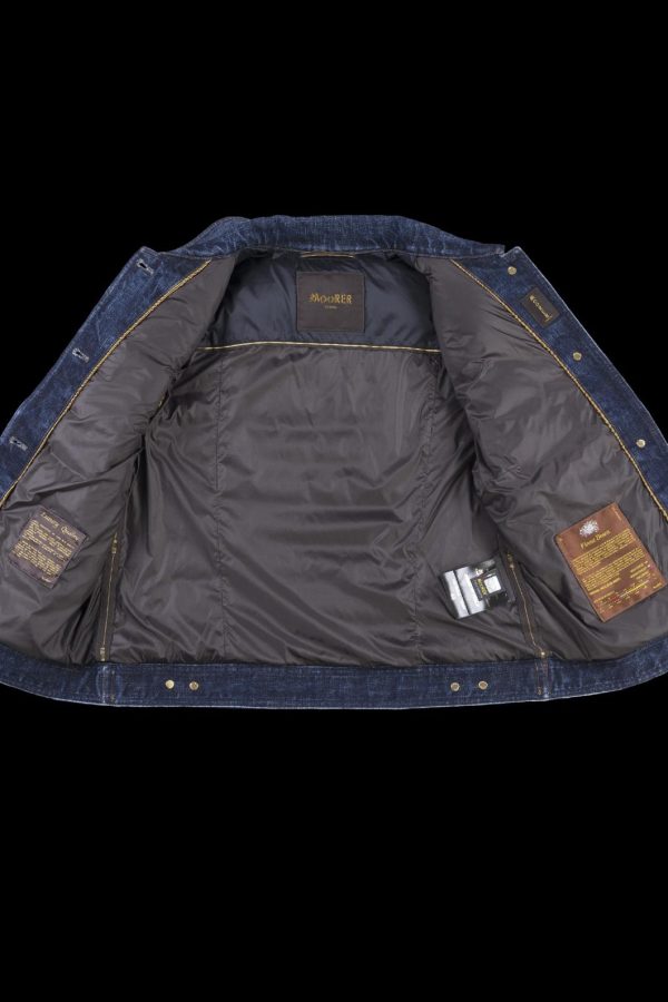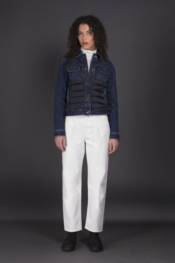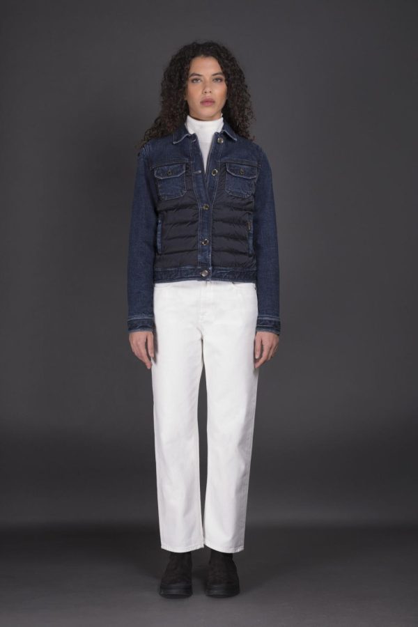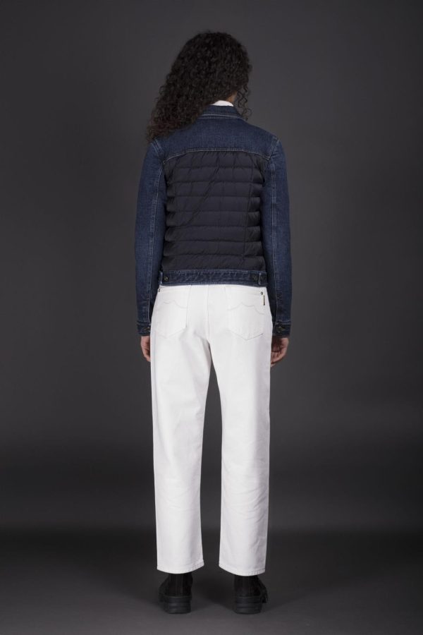 Iconic hybrid jacket with a slim silhouette and an unmistakable look. This garment is a perfect blend of slubbed Japanese denim treated with a “used” wash and a down-proof technical fabric padded with the finest goose down and quilted in boudin style.