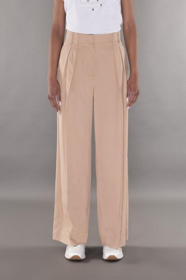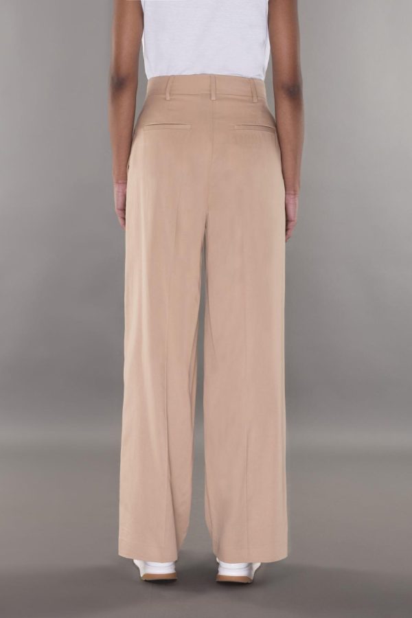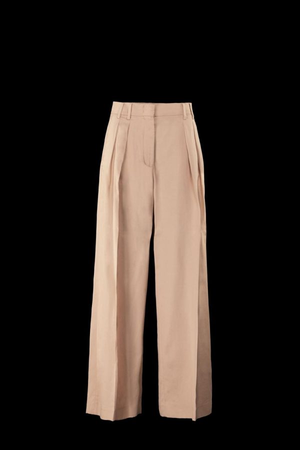 Pants with a classic cut and front pleats. Crafted from fluid gabardine made of Tencel and cotton, an eco-friendly fiber derived from eucalyptus. With vivid and intense colors, it is smooth, elastic, and breathable.