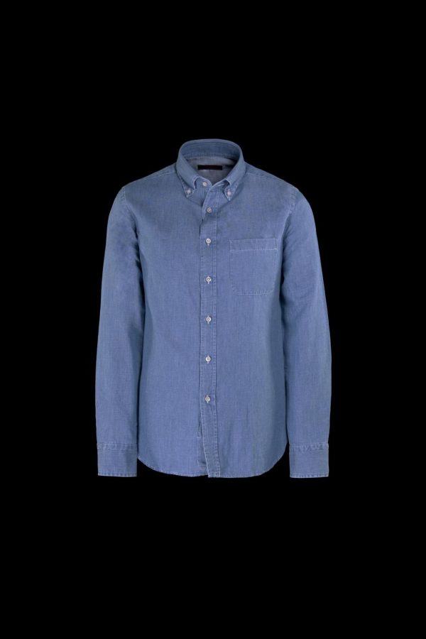 Shirt with an Italian-style collar, made in an exclusive linen and denim cotton fabric with a soft and lightweight feel.