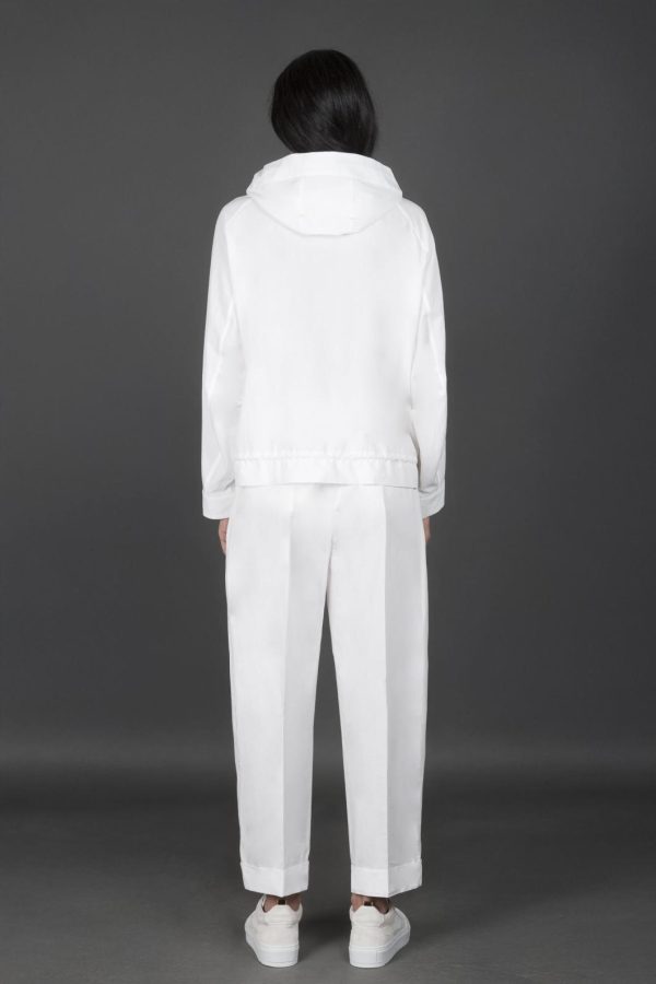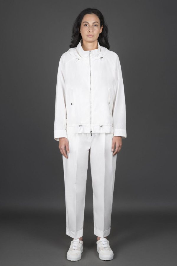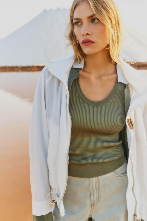 Elastic drawstring at the waist, allowing the garment to be worn like a modern bomber jacket