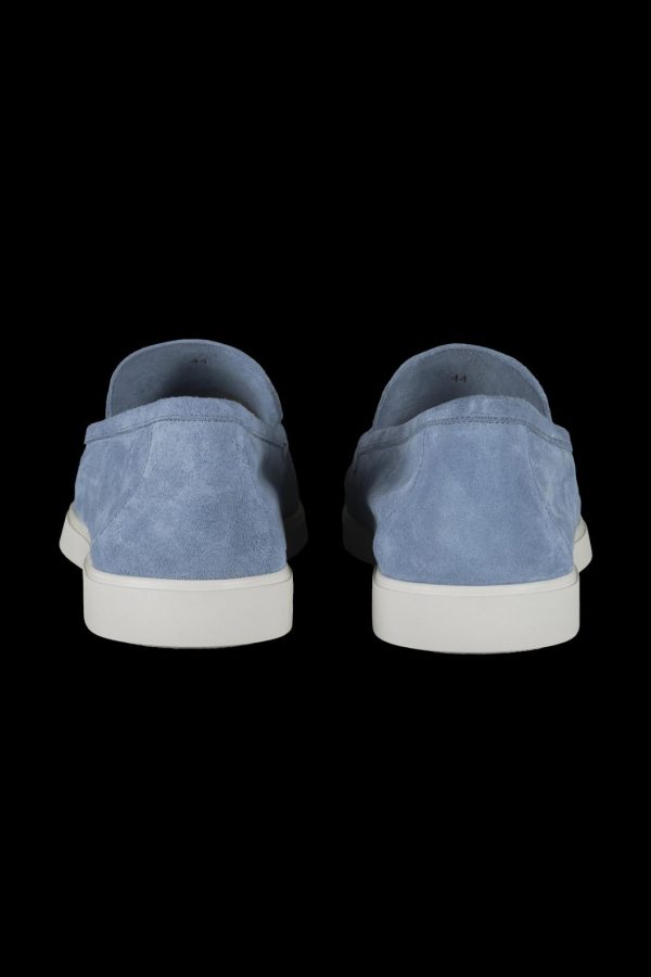 Calfskin suede loafers, hand-dyed in a barrel with aniline. The velvety surface boasts a unique sheen and an incredibly soft touch, reminiscent of special handwriting effects.